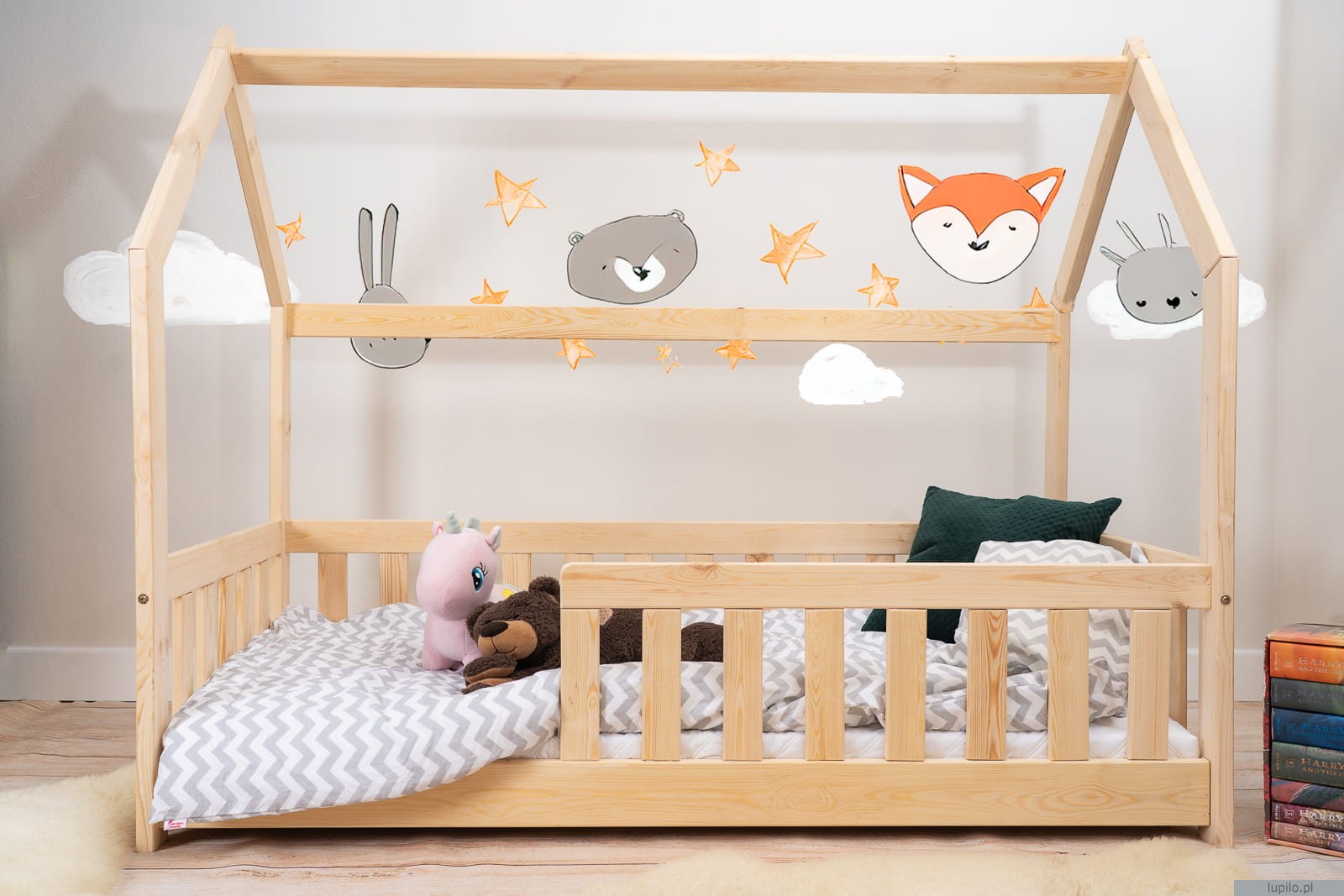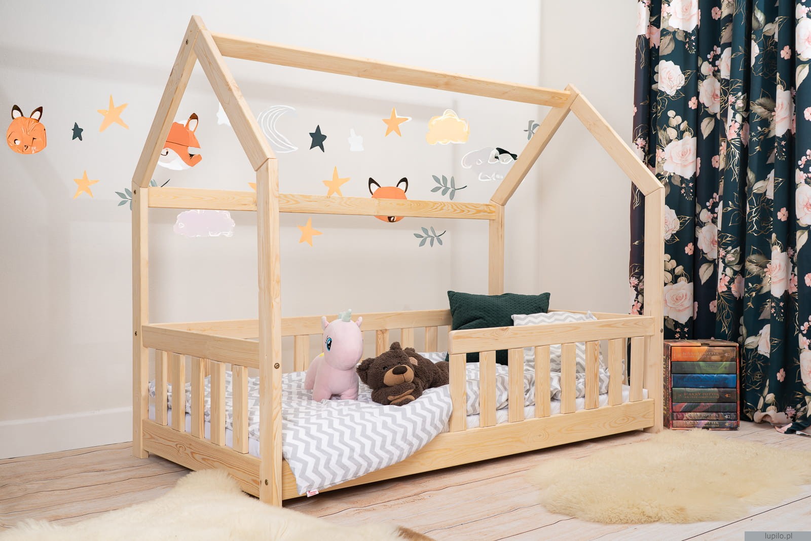 Łóżko dziecięce domek z barierkami Montesori 140x70cm