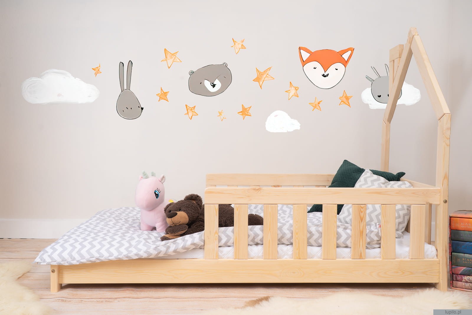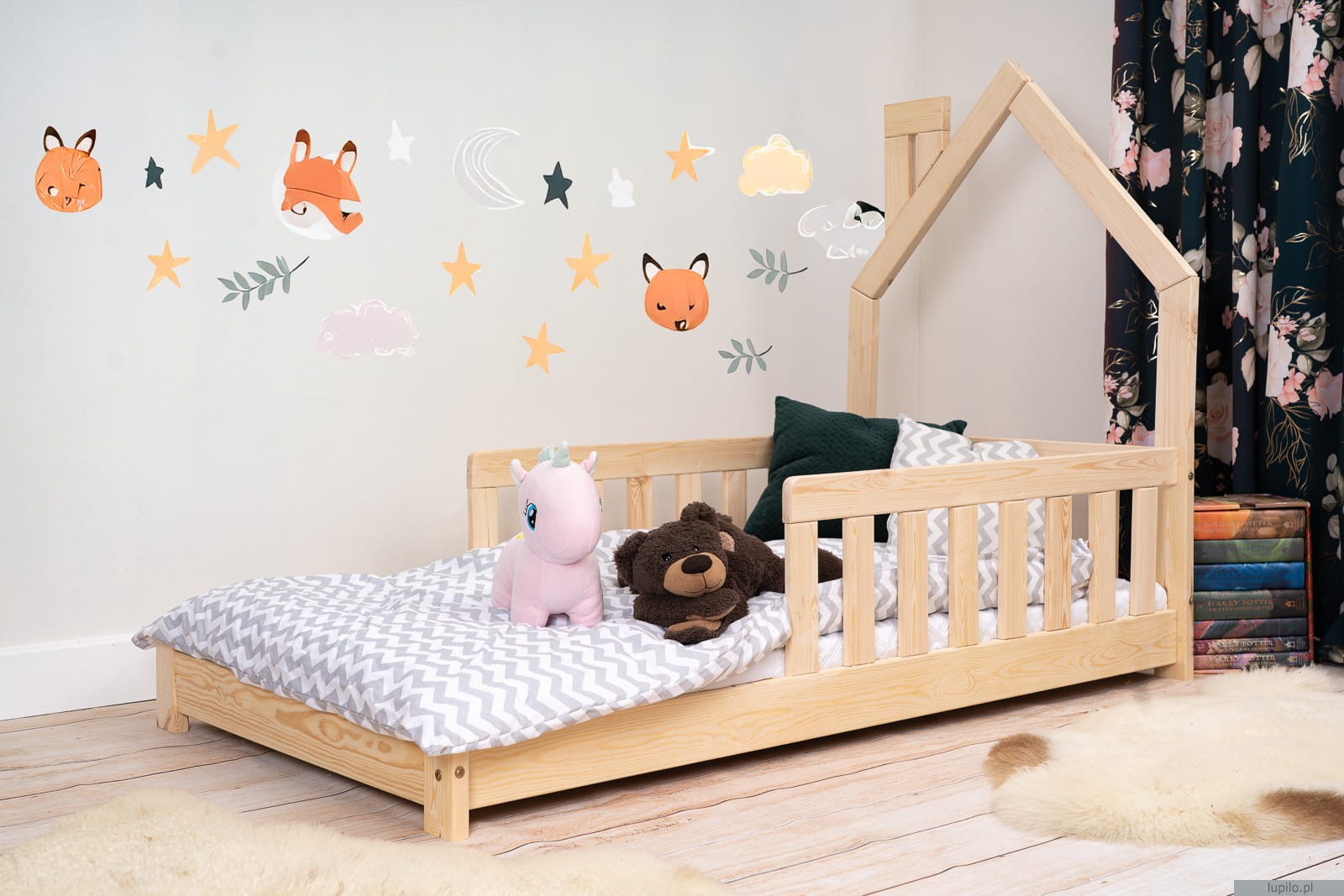 Łóżko dziecięce domek z barierkami TED 140x70cm